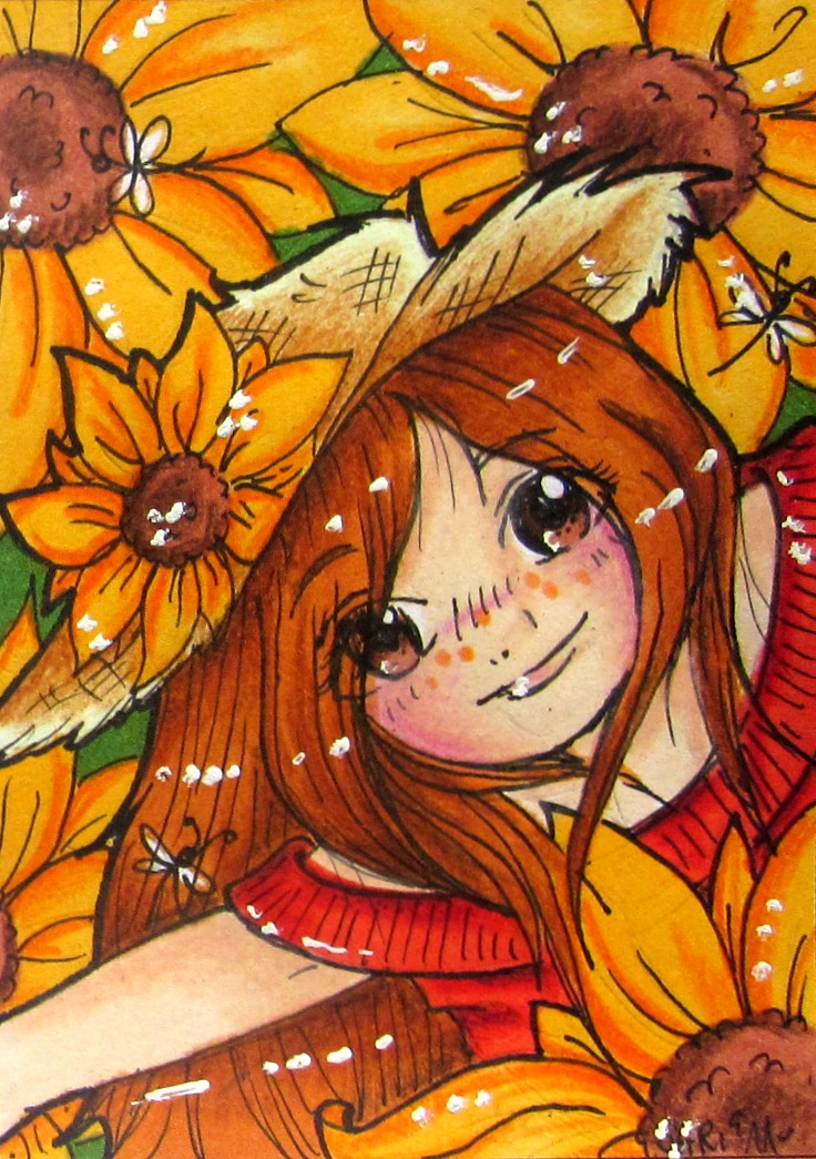 Die Karte ist DER Hammer!!! Ich liiiiebe sie! Haben will!!! Bin total begeistert! Ich liebe Sonnenblumen ohnehin, aber die Figur mit ihrem Hut ist auch sowas von goldig.*ausflipp* *cherry*