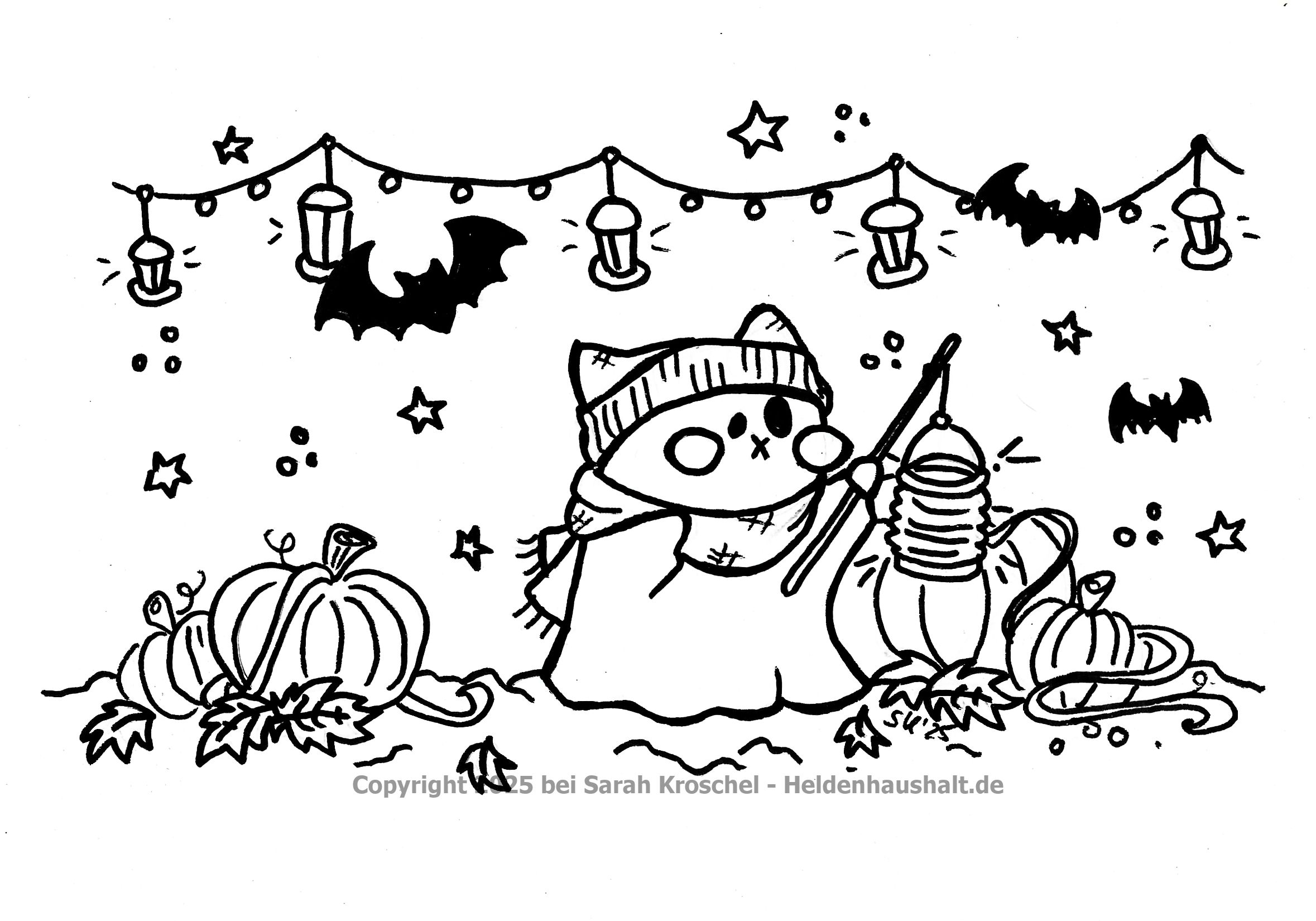 Im Oktober hatte ich ja nun bewusst darauf verzichtet mit ihm ein Ausmalbild zu erstellen, weil ich euch eh mit massig Katzengeist-Zeichnungen im Rahmen des Inktober vollballern würde. Dabei war allerdings nicht geplant, dass uns das Projekt mit in den November begleitet, aber was solls. Letzte Woche haben wir die Sache endlich abgeschlossen und so kann es nun für November weitergehen mit den Ausmalbildern.