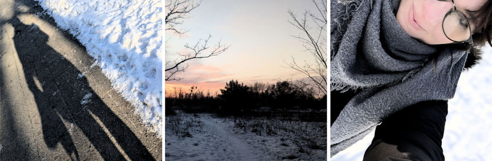 12. Ich gehe laufen. Die ersten Wochen trotz Schneefall und Co. Wir suchen uns Wege, die passierbar sind und kommen so immerhin auf über 30 km… bis die Wetterlage wirklich nichts mehr zulässt. So ärgerlich.