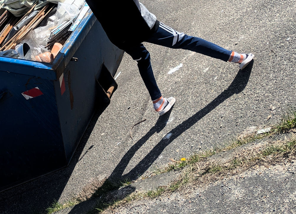 Da der Baucontainer diese Woche aber wieder abgeholt wurde, entfernten wir direkt das alte und nun beschädigte Laminat in den unteren Zimmern in gemeinsamer Arbeit (und leben nun gerade auf Betonboden). Was weg ist, ist weg, nicht wahr? Die Kinder hatten vor allem viel Freude daran alles in den Container zu feuern!