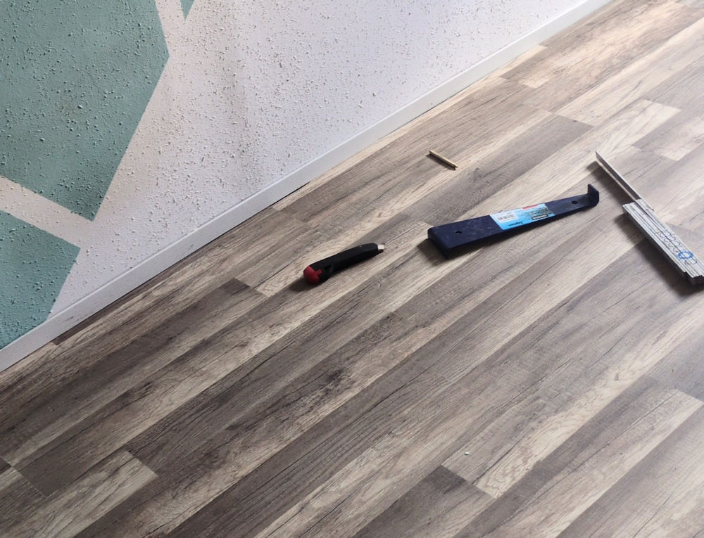 Unser erstes Ziel, so lange wir auf die Handwerker warteten, war das Zimmer des großen Sohnes so weit schon einmal fertig zu machen und so nutzten wir das Chaos, um auch bei ihm gleich das lang geplante Laminat zu verlegen. Der Sohn ist happy. Und ja, es sieht direkt ganz anders aus bei ihm.